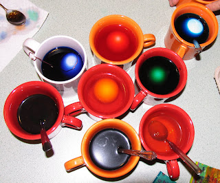 Christopher's parents joined us on Good Friday at our house to dye Easter eggs. We enjoyed pizza for dinner and then started to work. This year, Leila was completely involved and loved the whole process! Gramma and Leila adding vinegar to each cup. Perfect job for the three-year-old was to count the 3 tablespoons for each tablet. The crew - closest we could get to a smile from L at the moment. Goofing with Daddy...as usual! Is it ready yet?