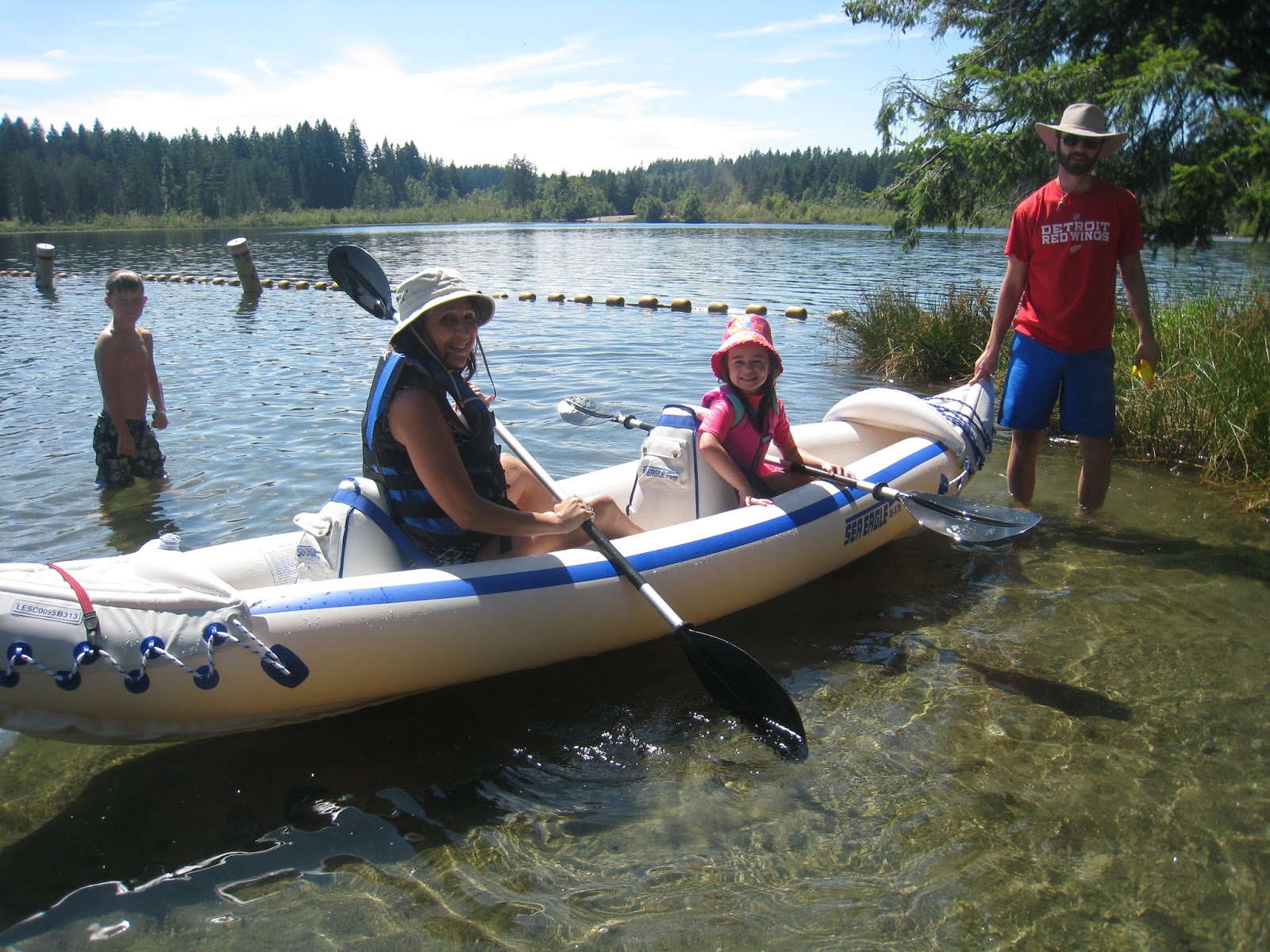 We spent three days just south of Olympia with Chris's parents camping at Millersylvania State Park. This was Leila's second time here and this summer was a ton better than last summer! She enjoyed the activities a lot more and was up to trying lots of new things. The biggest adventure we had was going out in Mike and Shawn's new kayak. I really didn't think Leila would give it a chance, but she did and she LOVED it! No sooner would you come in from a trip on the lake before she was asking to go back out again. We all took turns and she was able to spend a lot of time in the kayak. Well no wonder she liked it so much...look at what she did each time!! Actually, she did her fair share of paddling too.